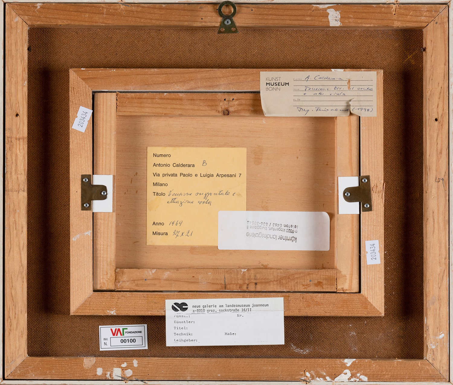 Etichetta al retro della Neue Galerie am Landesmuseum Joanneum, Graz