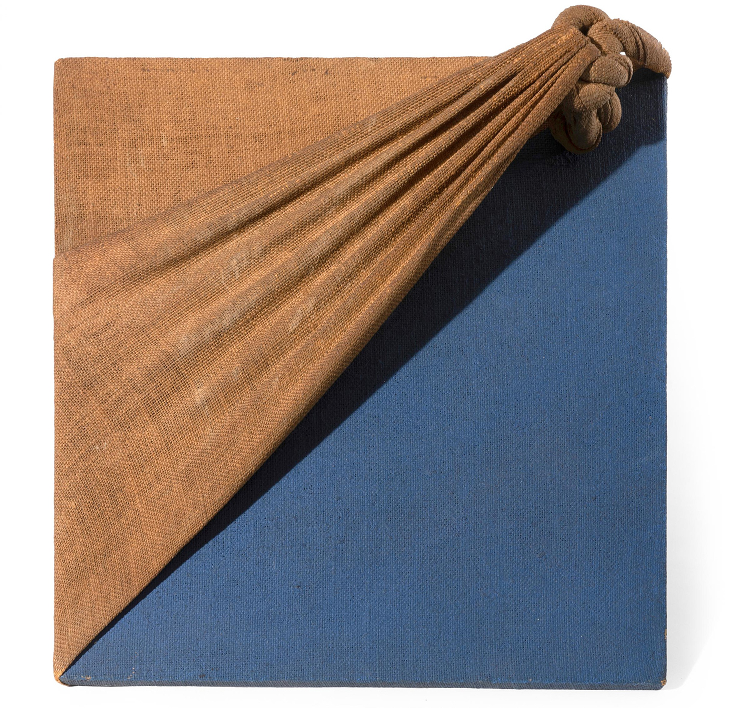 Jorge Eielson (1924-2006) Quipus, 1973; acrilico, juta e tela su tavola, cm 41,3x41,3x11