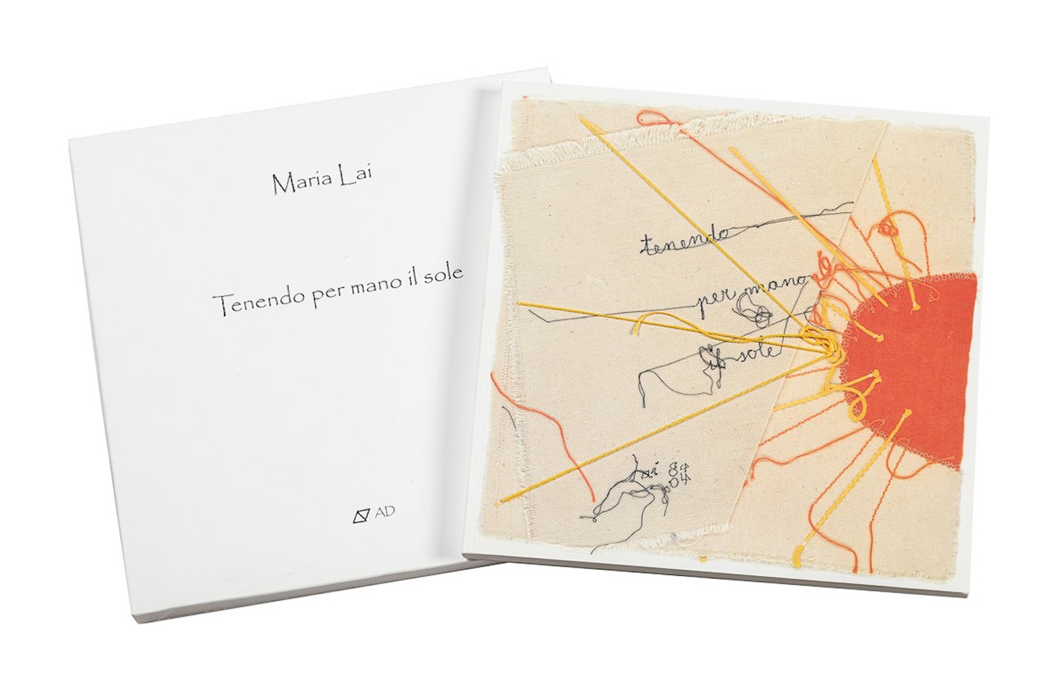 Maria Lai (1919-2013) Tenendo per mano il sole, 2004; 76 pagine con cofanetto cartaceo e copertina con fili di cotone.