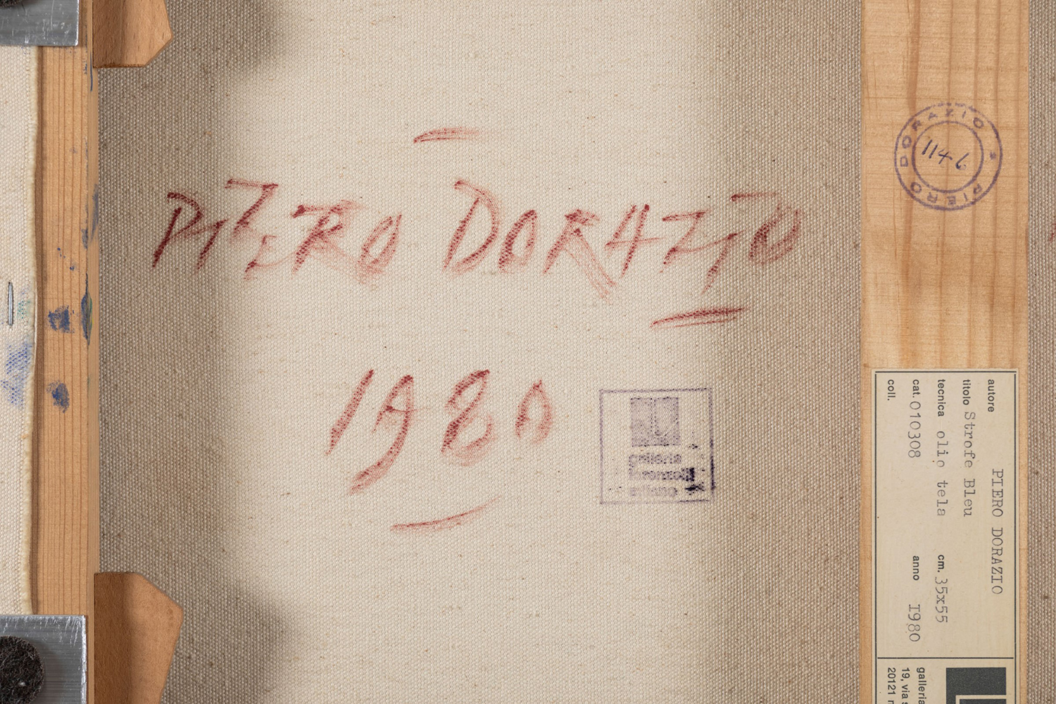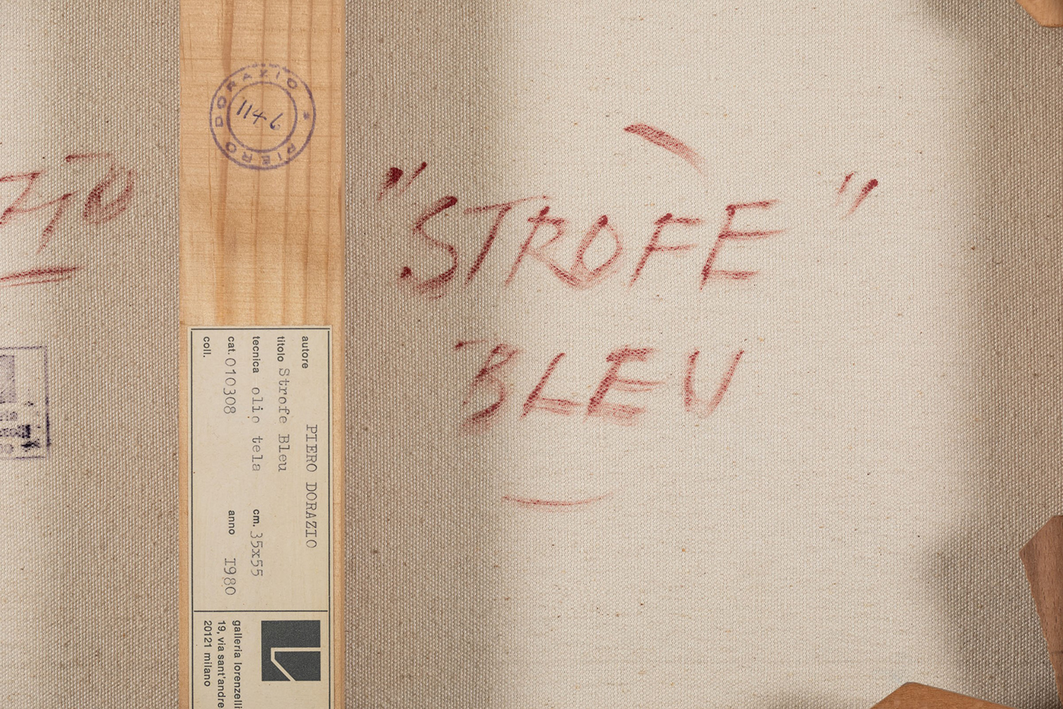 Piero Dorazio (1927 - 2005) Strofe bleu, 1980; olio su tela, cm 35x55