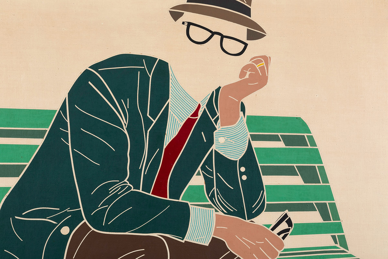 Emilio Tadini (1927-2002) L’uomo dell’organizzazione/week-end nel parco, 1968; olio su tela, cm 80x100
