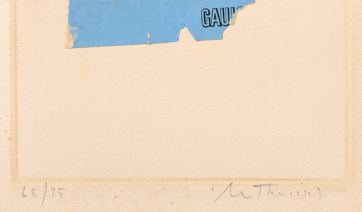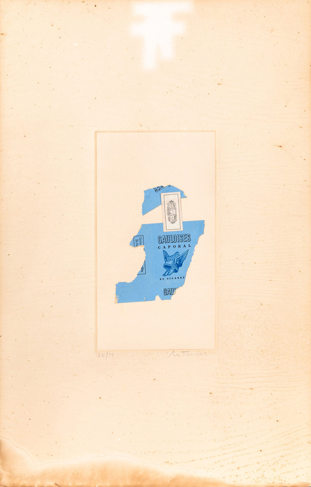 Robert Motherwell (1915-1991) Gauloises Bleues, 1968; acquatinta e collage su carta, cm 25 x13