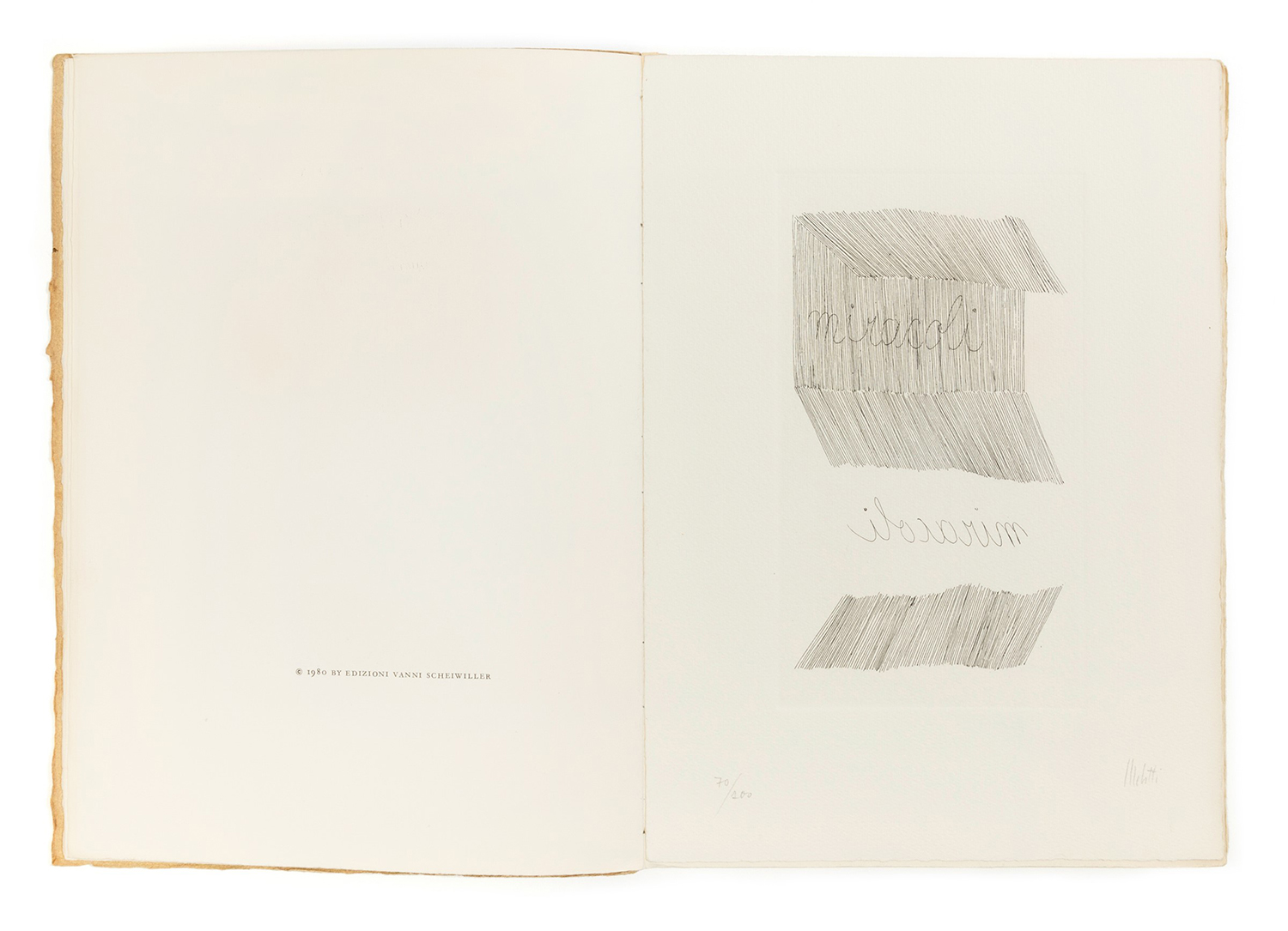 Fausto Melotti (1901-1986) Miracoli, 1980; quattordici poesie e sei acqueforti firmate a matita in basso a destra, cm 35x25