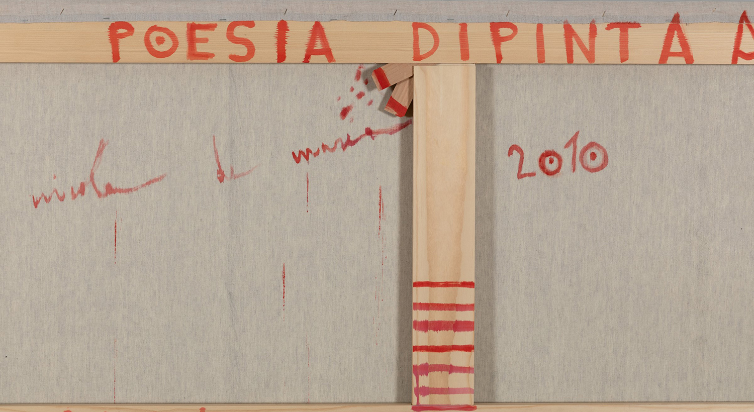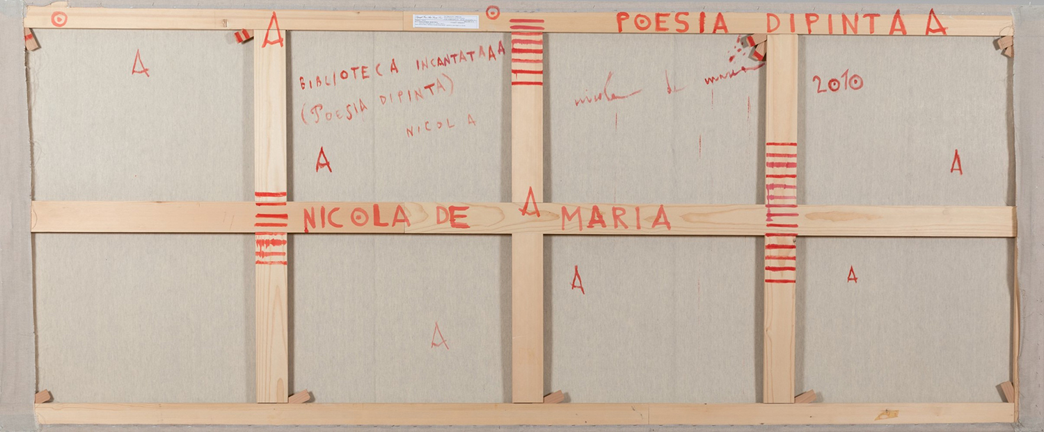 Nicola De Maria (1954) Biblioteca Incantata, 2010; tecnica mista su carta intelata, cm 140x340