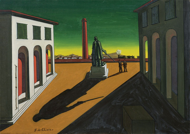 Giorgio de Chirico Volos 1888 - Roma 1978 Piazza d'Italia, 1959 Olio su tela, cm. 50x70 Firma in basso a sinistra: G. de Chirico; al verso sulla tela firma e titolo: Giorgio de Chirico / "Piazza d'Italia con monumento al / Colonnello Missori" / Giorgio de Chirico: dichiarazione di autenticità del notaio Diego Gandolfo in data 27 luglio 1959: timbro Galleria Bergamini, Milano, con n. DC 4A68/3: timbro Galleria Sianesi, Milano. Storia Collezione privata, Roma; Collezione privata Bibliografia Claudio Bruni Sakraischik, Catalogo Generale Giorgio de Chirico, volume ottavo, opere dal 1951 al 1974, Electa Editrice, Milano, 1987, n. 1226.