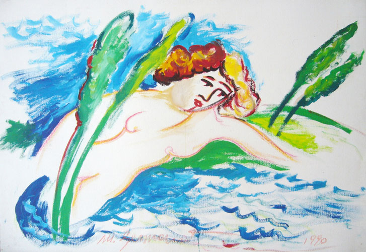 Germanà Mimmo " Figura al bagno " Acrilico su cartone cm 105 x 75 anno 1990 Firmato in basso al centro,datato in basso a destra , Prov.COLLEZIONE PRIVATA
