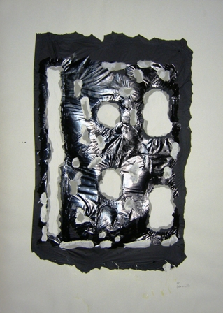 Leoncillo Leonardi Senza titolo Tempera e smalto su carta, velina nera su cartoncino cm 72 x 100 firmato in basso a destra, autentica a retro archivio Mascelloni Enrico, Prov.COLLEZIONE PRIVATA