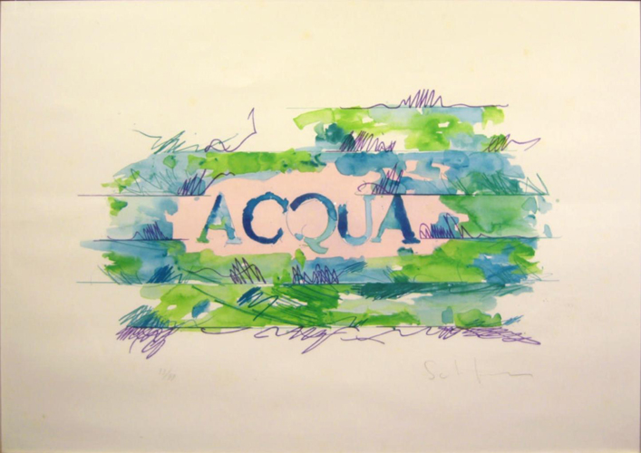 Schifano Mario " acqua " litografia cm 50 x 70 firmata in basso a destra,tiratura n° 33/99, eseguita per la Soc.d'Ingegneria C.Lotti Associati - Roma - Ed.R.Bulla e figli, Roma, Prov.COLLEZIONE PRIVATA
