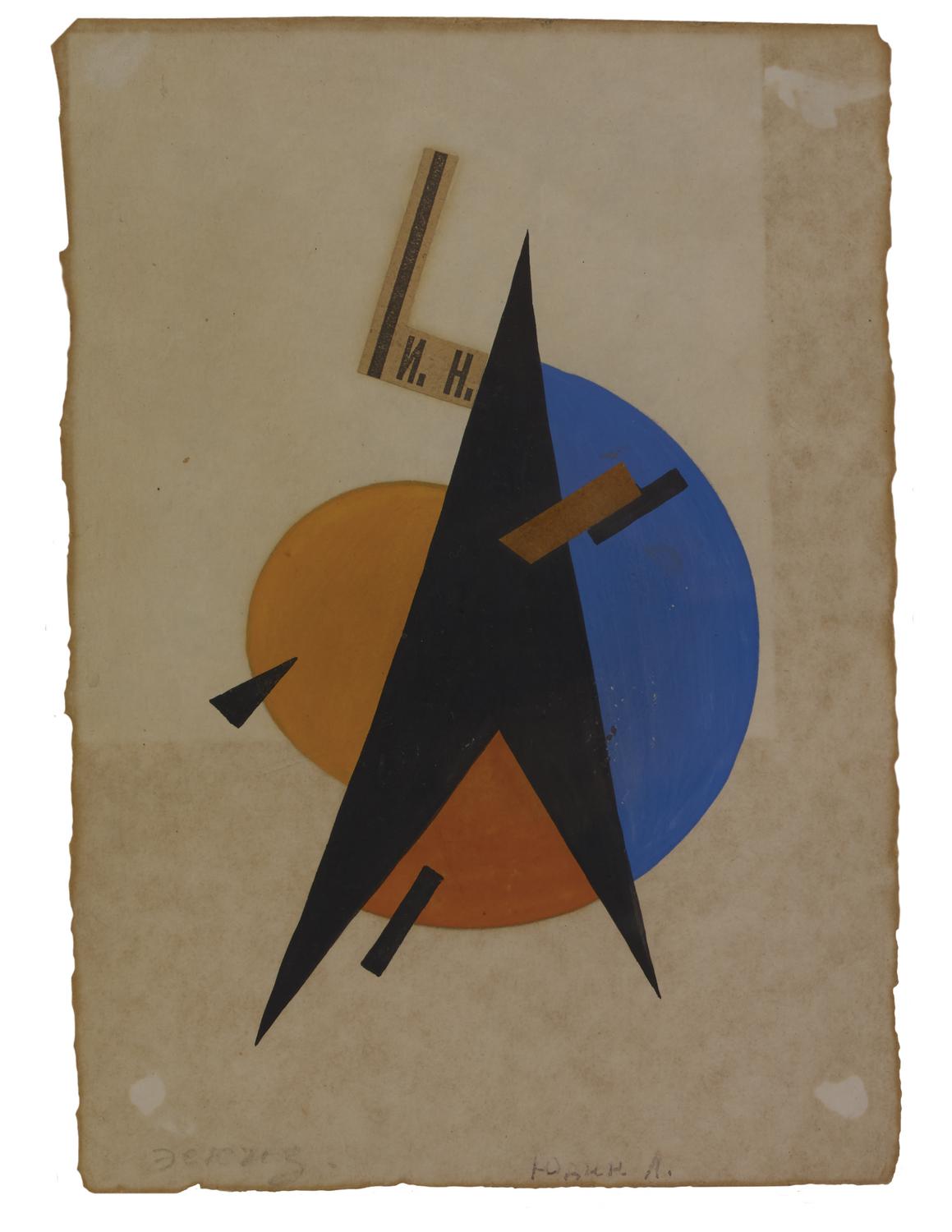 Lev Alexandrovich Yudin COMPOSIZIONE tempera e collage su carta, cm 19,5x14...