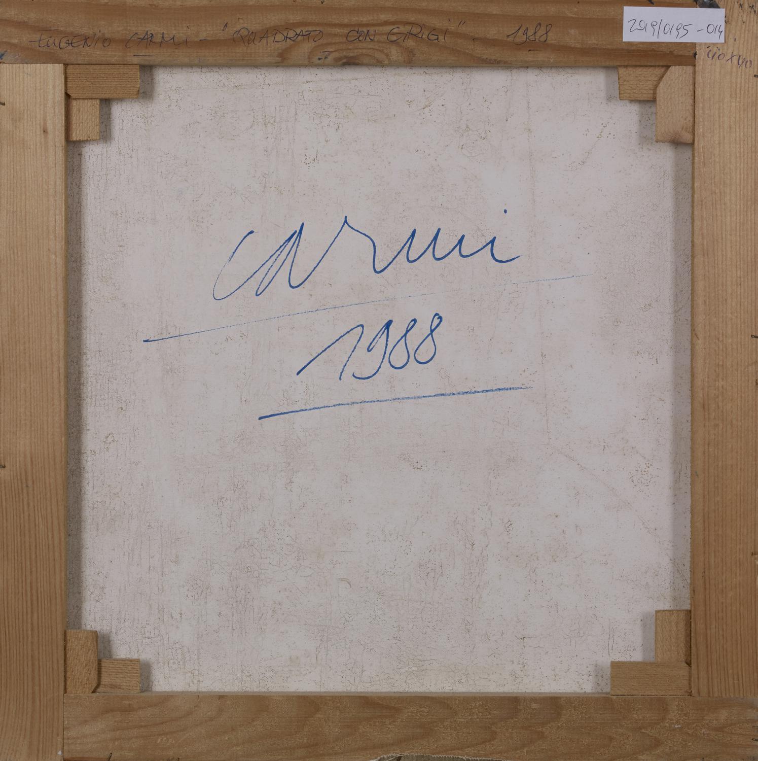Lotto 173 | Eugenio Carmi QUADRATO CON GRIGI acrilici su tela, cm 40x40 sul retro: firma,...