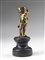 MANIFATTURA ITALIANA DEL XVII SECOLO Putto in bronzo dorato. . Cm 4,50 x 10,00. Base in legno. Misure con base: 16.5x6.5 cm. Mancanze alla doratura.