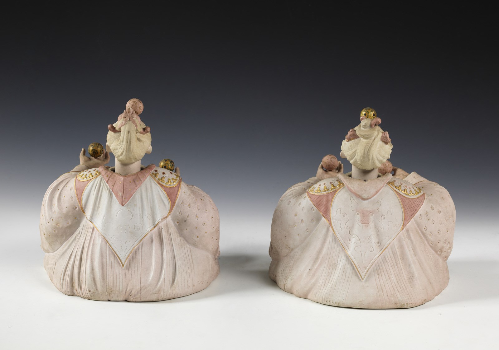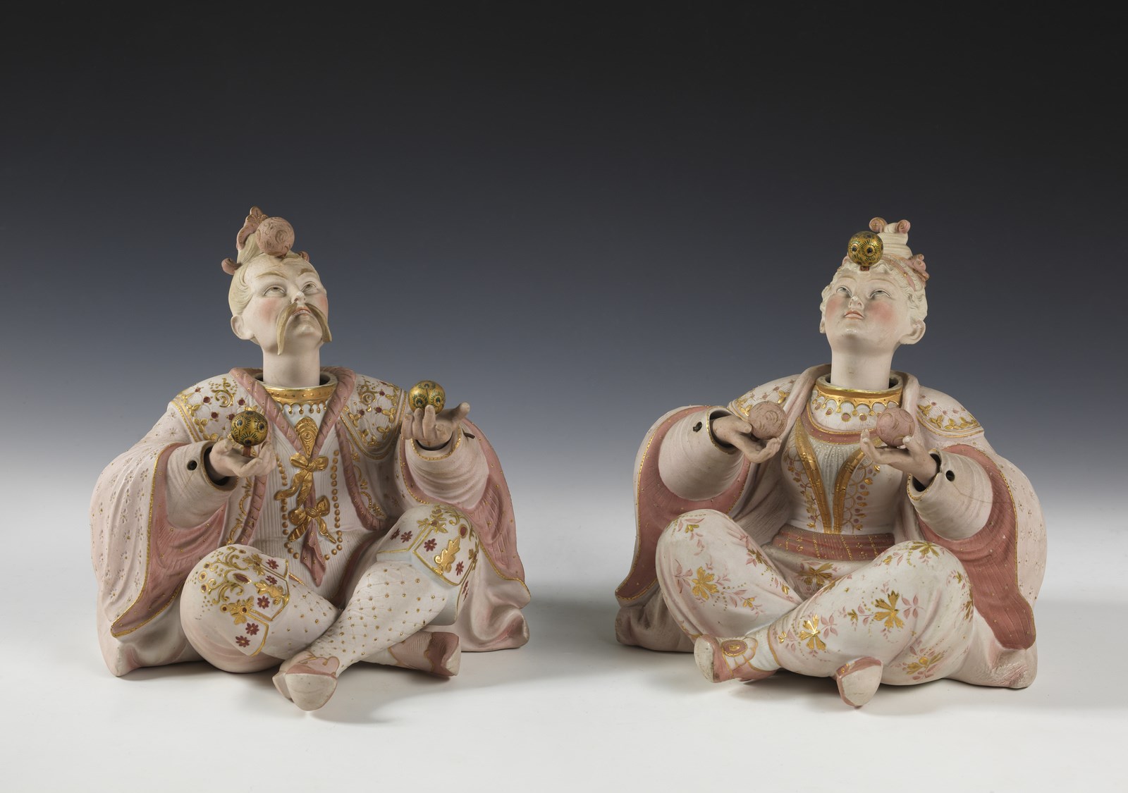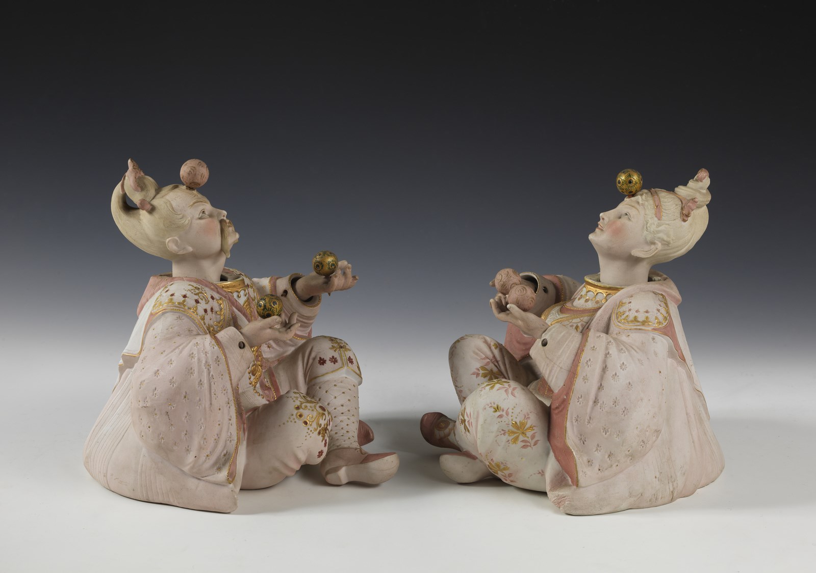 MANIFATTURA FRANCESE DEL XIX-XX SECOLO Coppia di Magot giocolieri.