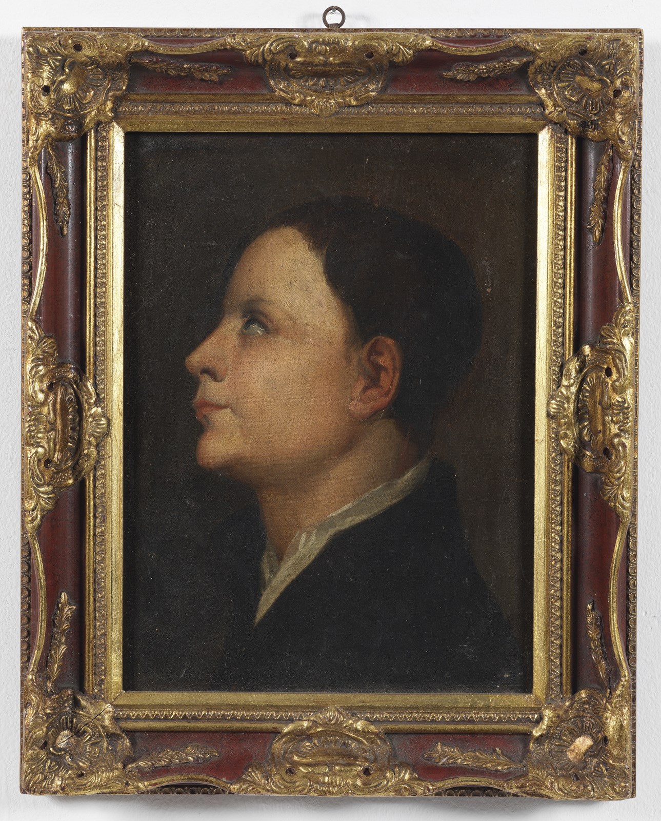 ARTISTA DEL XIX SECOLO Ritratto di giovane di profilo. Olio su tela . Cm 32,00 x 40,00.