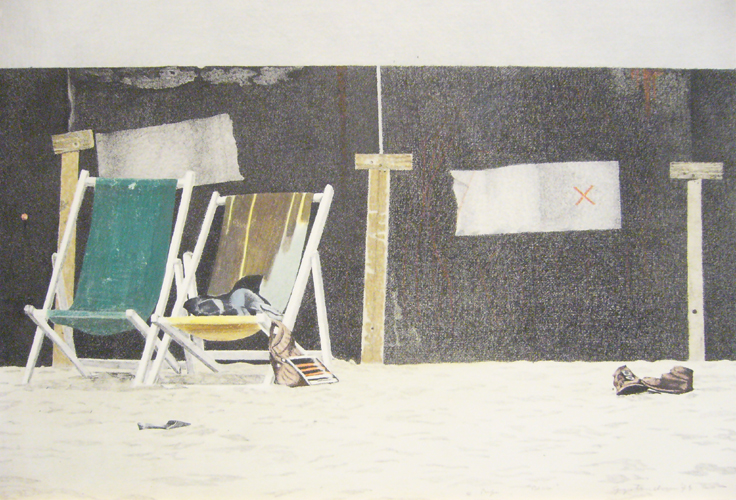 Tonelli Giuseppe " bagni " base grafica ritoccata a pastello cm 50 x 34 anno 1974 Firmata e datata e intitolata in basso a destra, Prov.COLLEZIONE PRIVATA