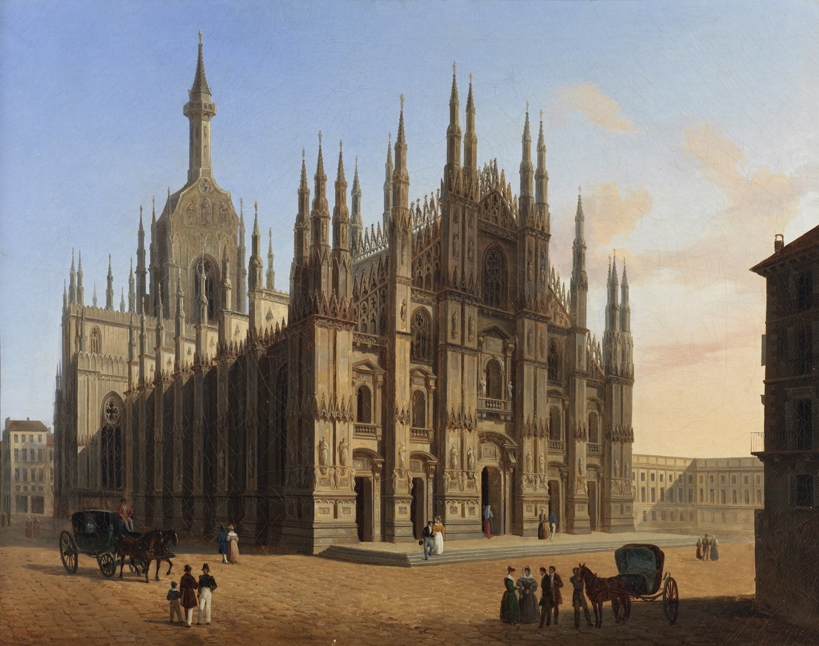 ARTISTA LOMBARDO DEL XIX SECOLO Veduta del duomo di Milano.