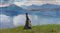 ANGELO LANDI Paesaggio montano con donna e bimbo.