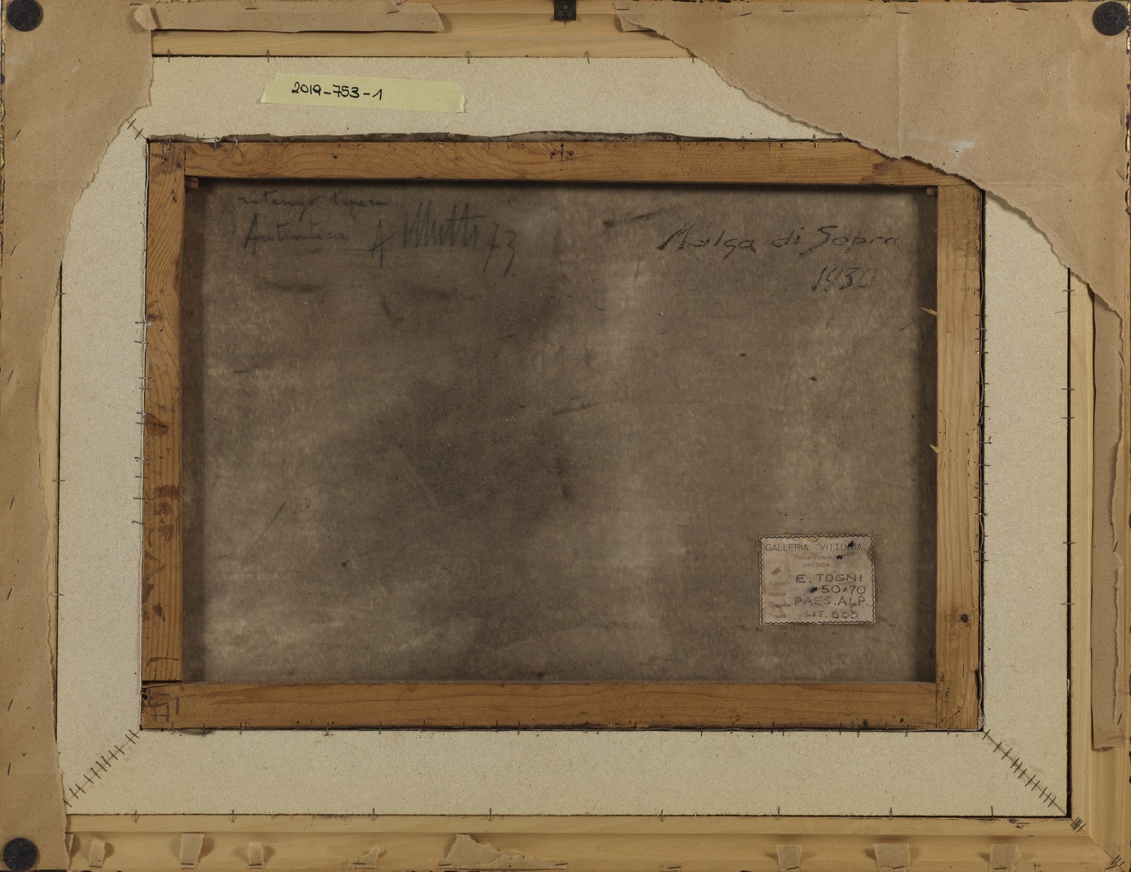 TOGNI EDOARDO (1884 - 1962) Paesaggio con casa. Olio su tela . Cm 69,00 x 49,00. Firma in basso a destra. Al retro anno 1930. Autenticità a cura di A. Mutti, 1973. Cartiglio descrittivo, Galleria Vittoria, Brescia. . Cornice presente