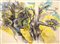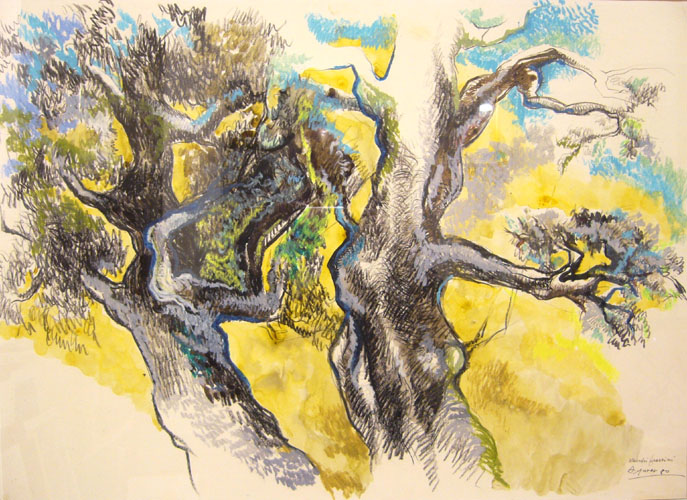 Murer Augusto " vecchi frassini " Tecnica mista / pastello ad olio su carta...