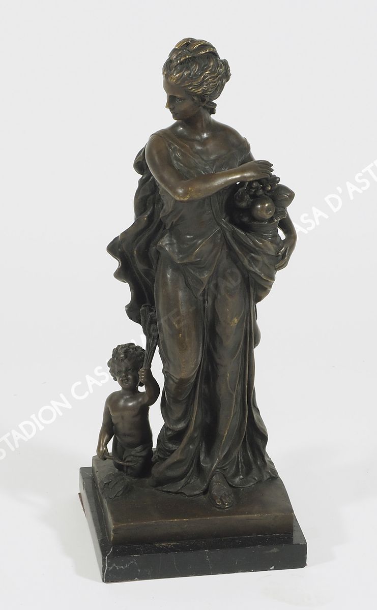 Artista del '900 "Allegoria della frutta" h. tot cm. 50 - scultura in bronzo...