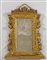 Specchio con cornice in legno dorato finemente scolpito a volute e teste di putti. XIX secolo. cm. 65x45.