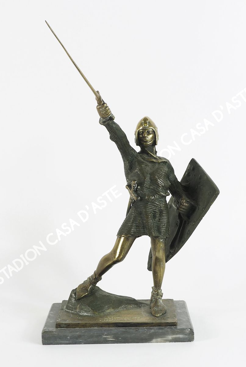 Lotto 63 | Scultura in bronzo a due colori raffigurante Alberto di Giussano, base in...