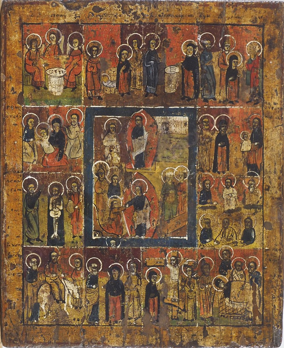 Lotto 85 | Icona dipinta su tavola raffigurante Santi. XIX secolo. cm. 32x26.