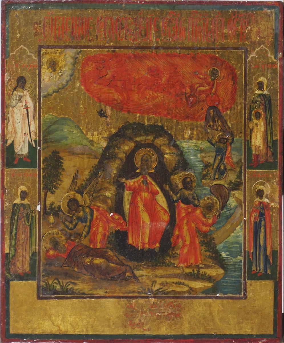 Icona dipinta su tavola raffigurante Scena sacra. XIX secolo. cm. 27x22.