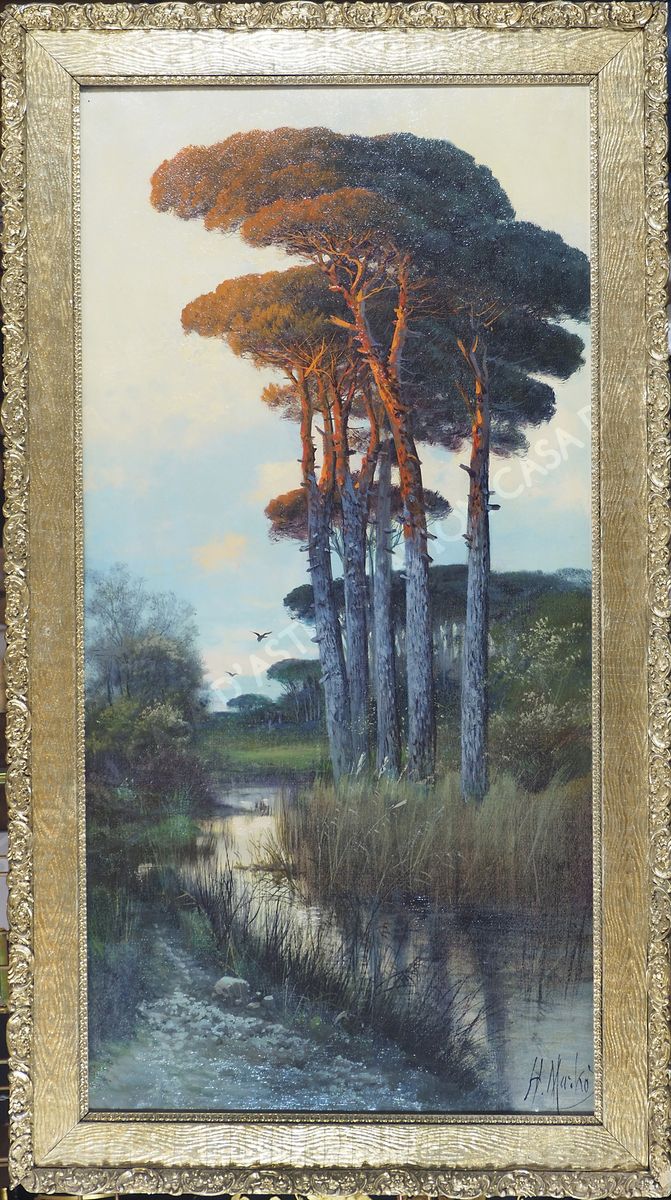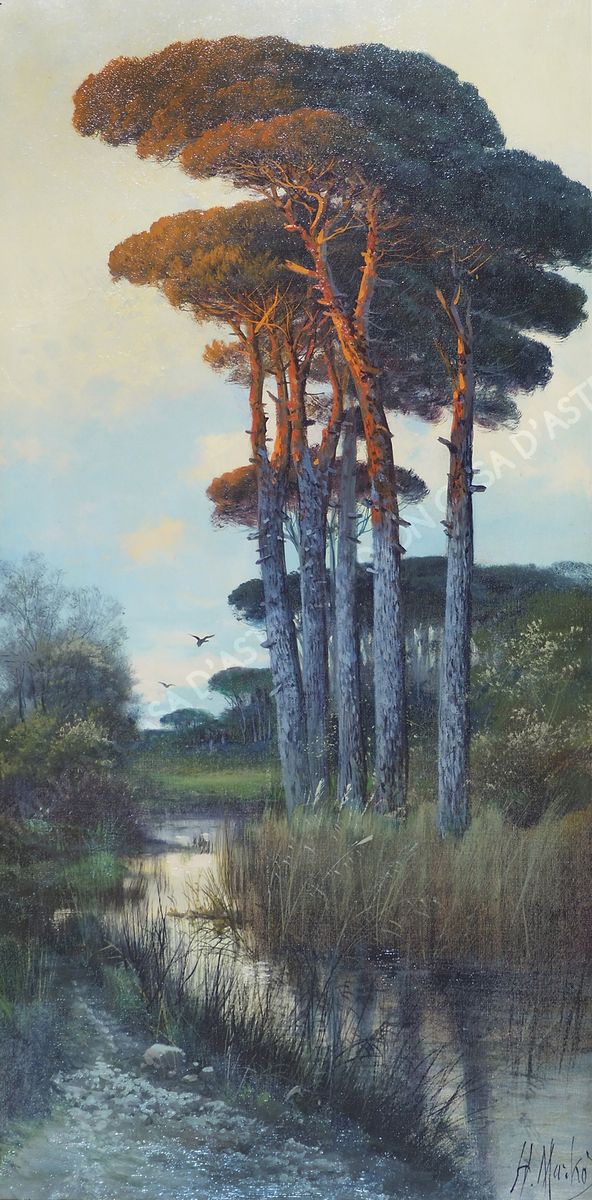 Henry Markò 1855-1921 "Prime luci" cm. 100x50 - olio su tela Firmato b. a d.