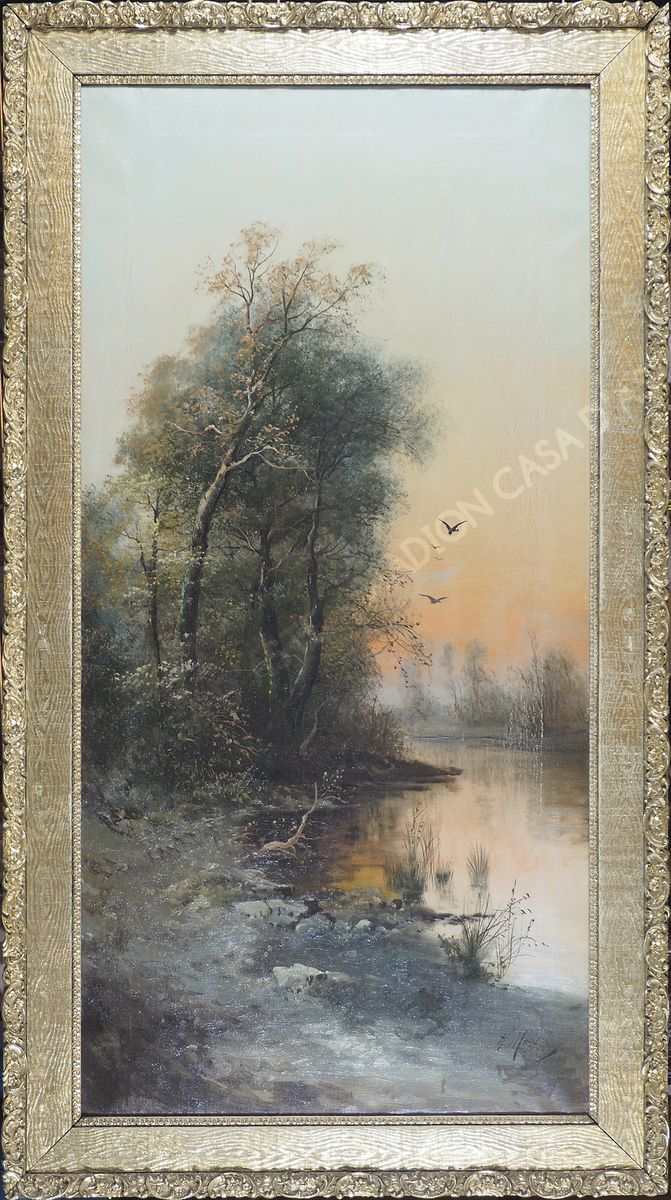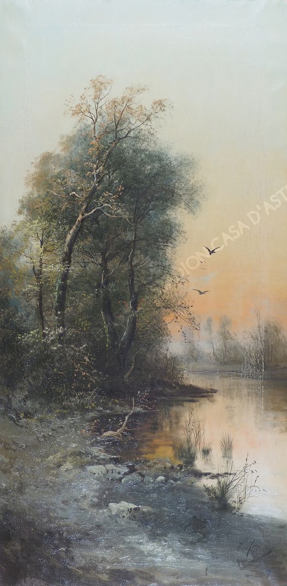 Lotto 301 | Henry Markò 1855-1921 "Tramonto sul fiume" cm. 100x50 - olio su tela Firmato...