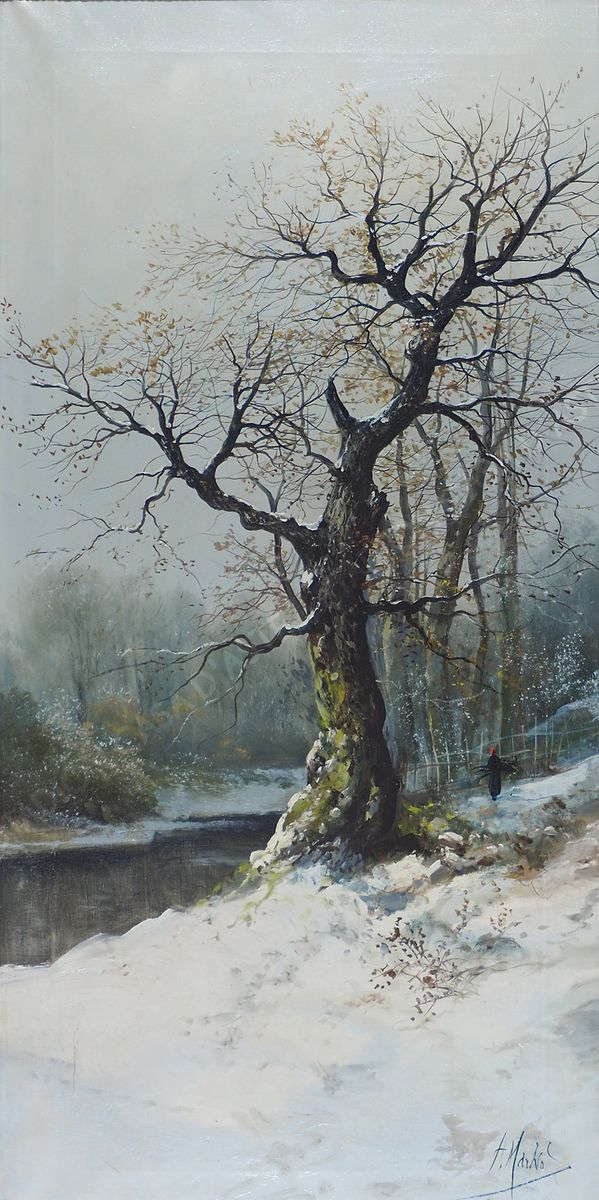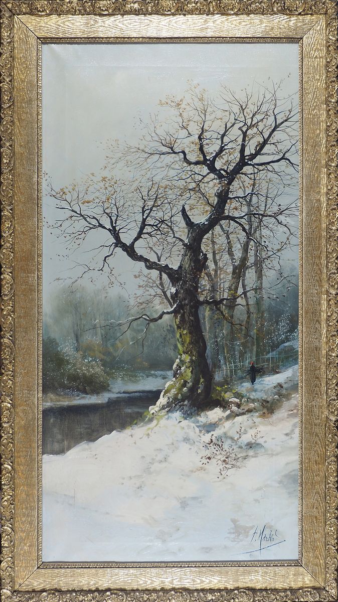 Lotto 302 | Henry Markò 1855-1921 "Passeggiata dopo la nevicata" cm. 100x50 - olio su...