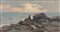 Giovanni Lomi Livorno 1899-1969 "Tramonto sugli scogli" cm. 20x40 - olio su...