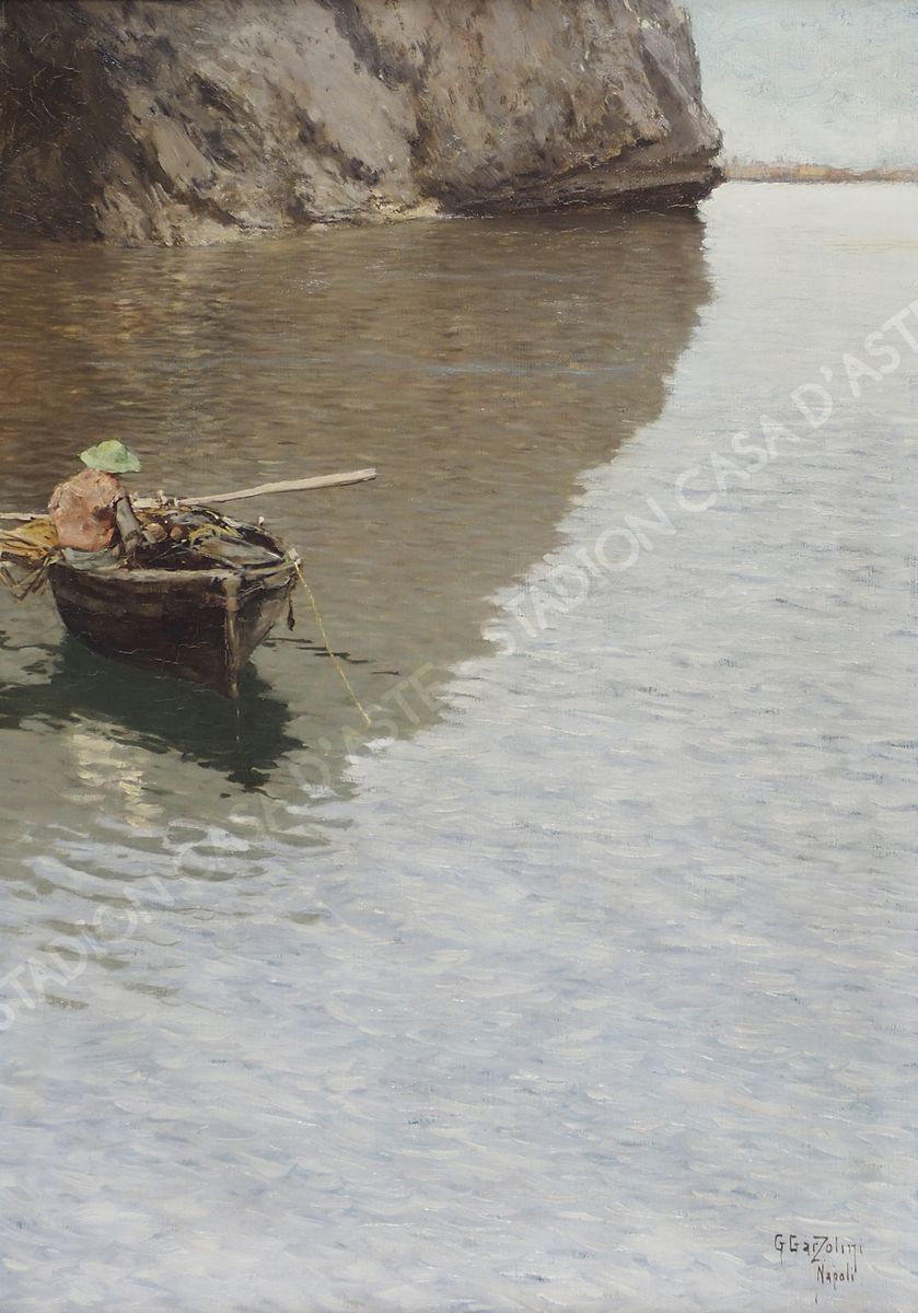 Giuseppe Garzolini Trieste 1850-1938 "Pescatore al largo di Napoli" cm. 66x46...