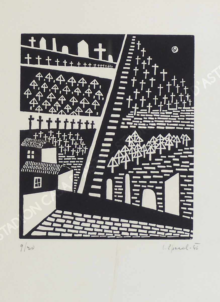 Luigi Spacal Trieste 1908-2000 "Cimitero" cm. 33x25 - incisione a colori...