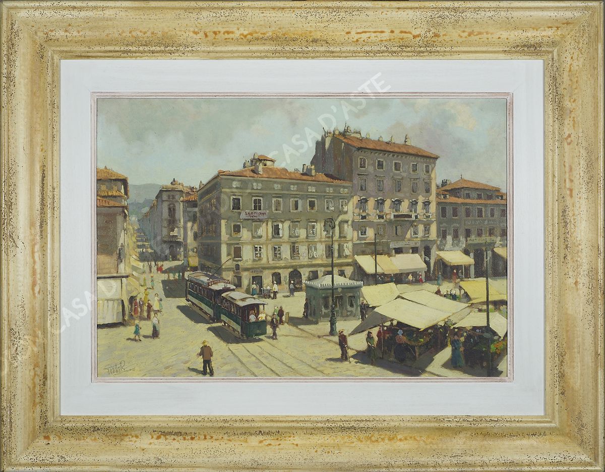 Lotto 414 | Riccardo Tosti Trieste 1910-1986 "Trieste, tram in Ponterosso" cm. 38x55 -...