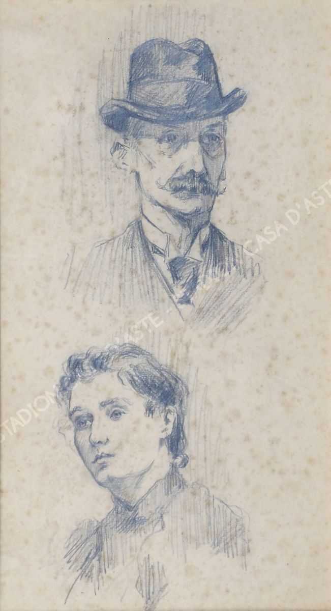 Pietro Marussig Trieste 1879-Pavia 1937 "Ritratti" (1903) cm. 28x16 - matita...