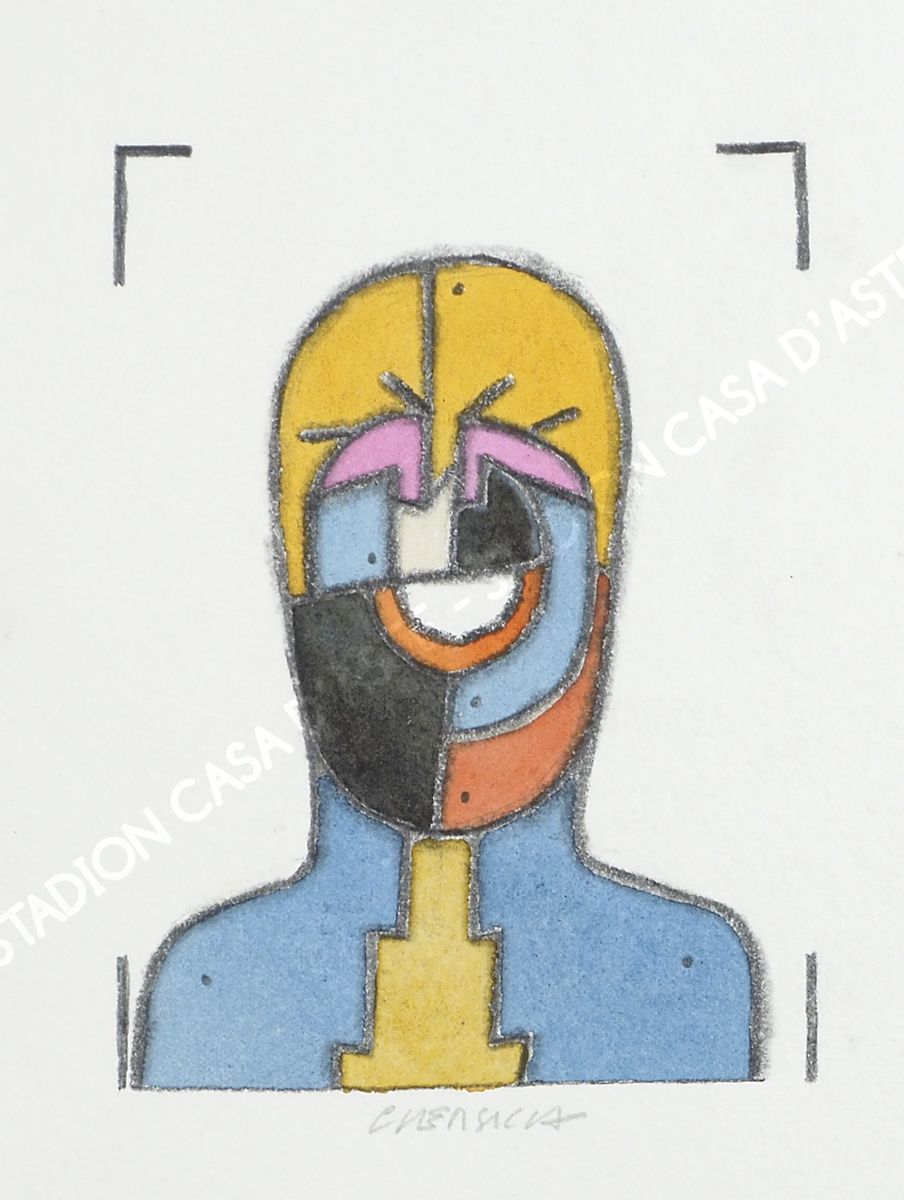 Bruno Chersicla Trieste 1937-2015 "RDM in blu" cm. 25x18 - tecnica mista su...