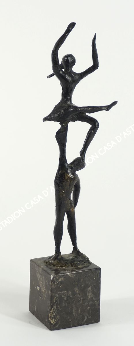 Adriano Alberti 1919-1981 "Danzatori" h. tot cm. 33 - scultura in bronzo a...