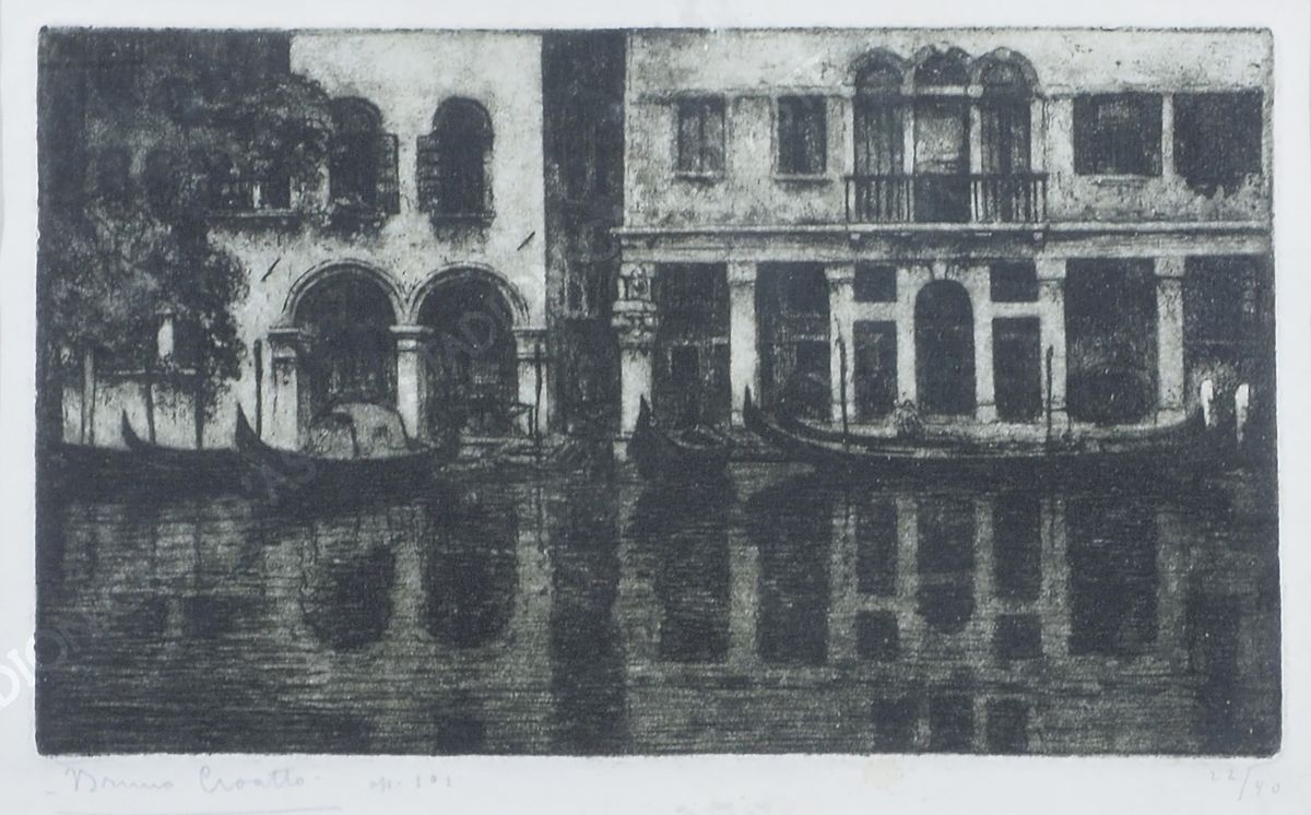 Bruno Croatto Trieste 1875-Roma 1948 Lotto di 2 incisioni raffiguranti angoli...