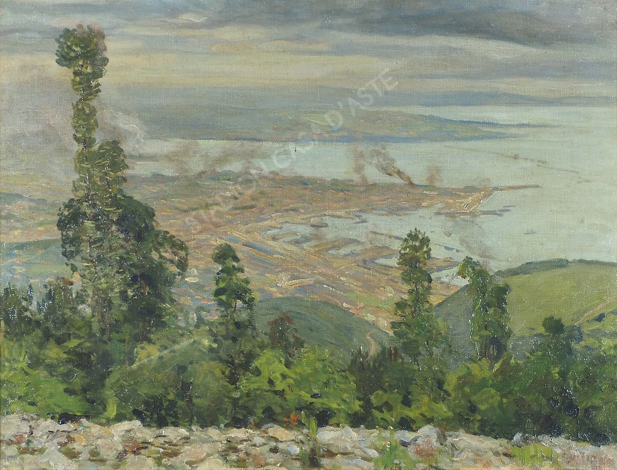 Ugo Flumiani Trieste 1876-1938 "Trieste da Poggioreale" cm. 51x68 - olio su...