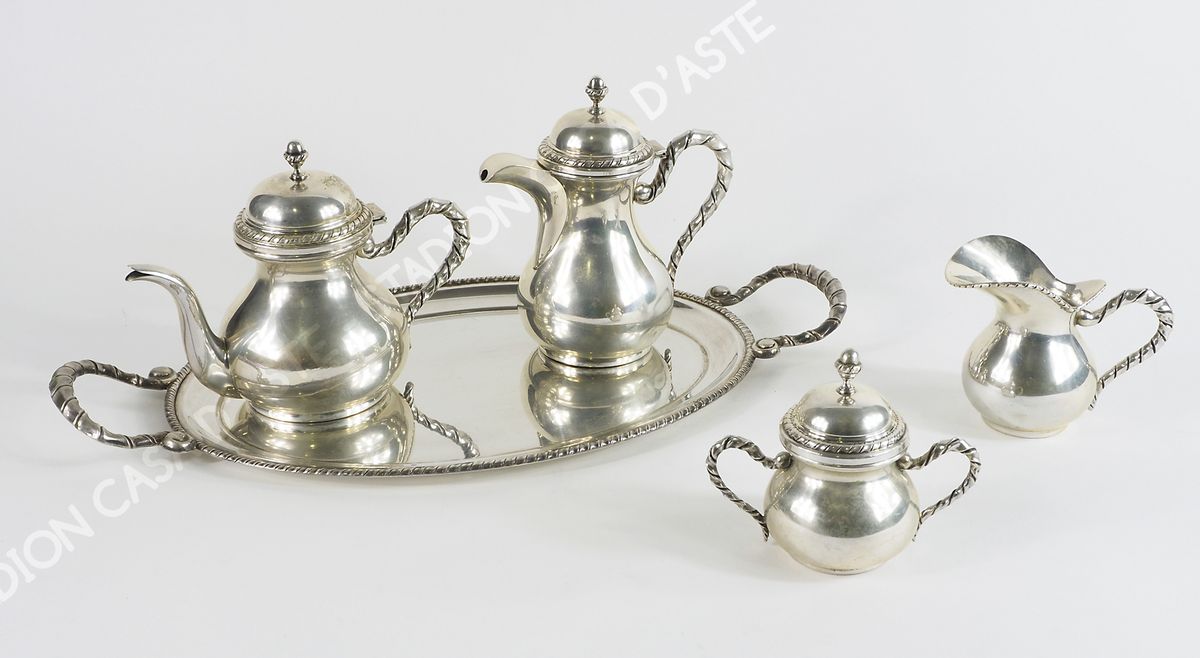 Servizio da caffè e thè in argento composto da 5 pezzi. gr. 1650.