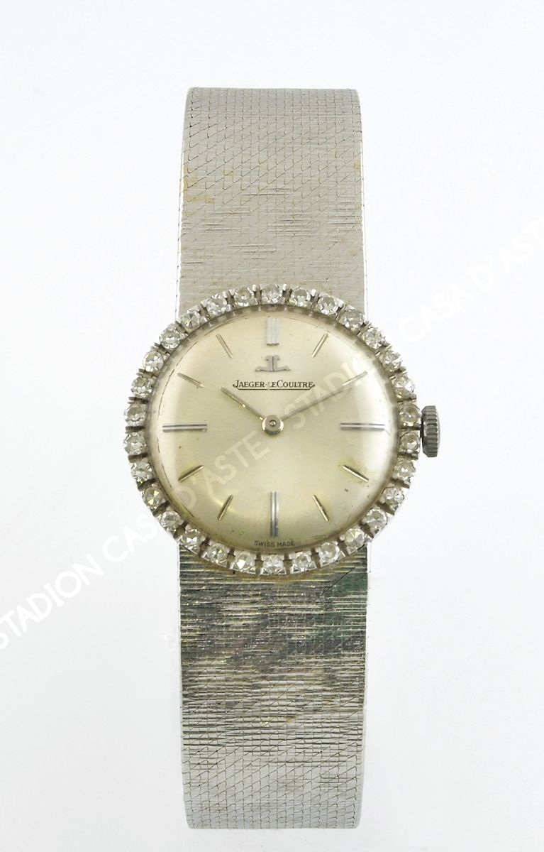 Jaeger Le Coultre: orologio da polso da donna in oro bianco, quadrante rotondo contornato da diamanti. gr. tot