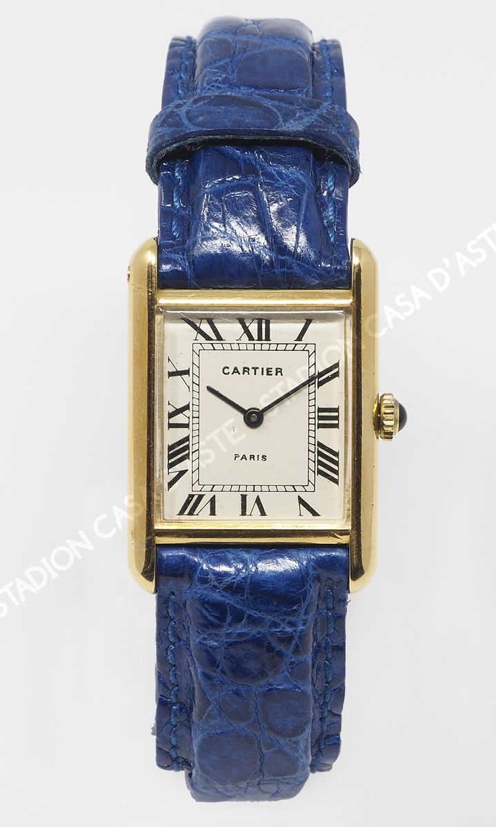 Cartier: orologio da polso da donna con cassa rettangolare in oro giallo e...