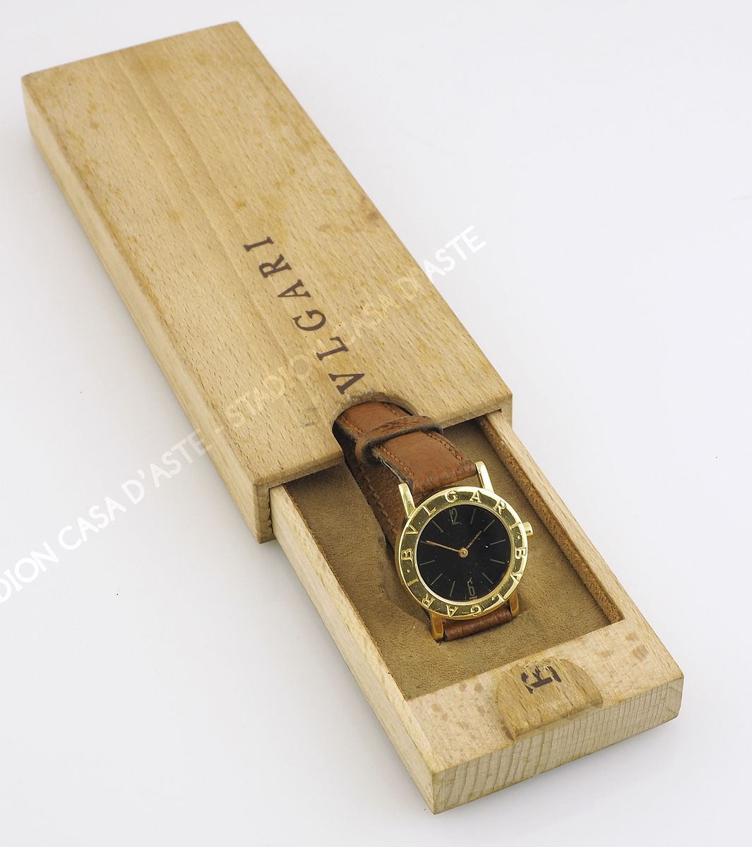 Bvlgari: orologio da polso da donna con cassa rotonda in oro giallo, quadrante nero. Con scatola originale.