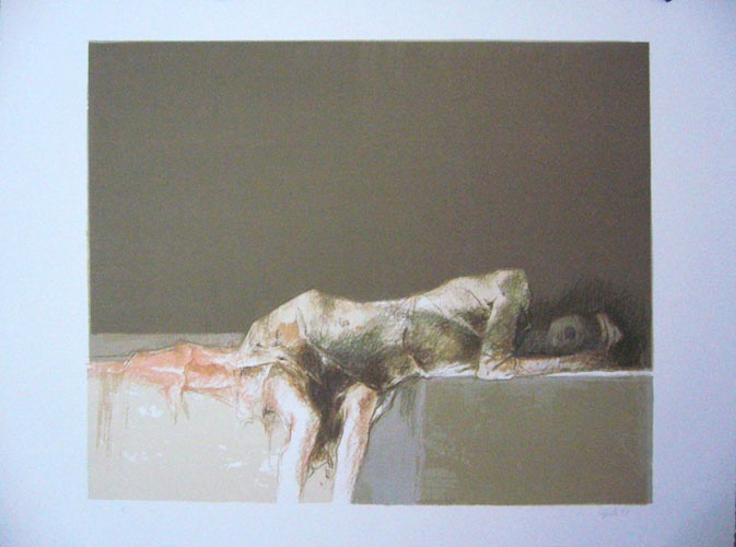 Cappelli Giovanni " figura sdraiata " litografia cm 60 x 46 anno 1971 Firmata e datata in basso a destra, tiratura P.S., Prov.COLLEZIONE PRIVATA