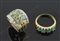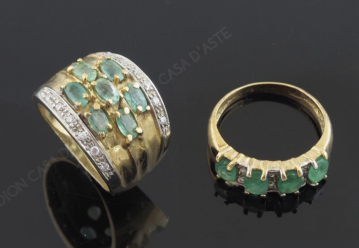 Lotto composto da 2 anelli in oro giallo con diamanti e smeraldi. Misure 18 e 19