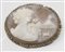 Spilla ovale a cammeo raffigurante gentildonna. cm. 3,5x4,5.