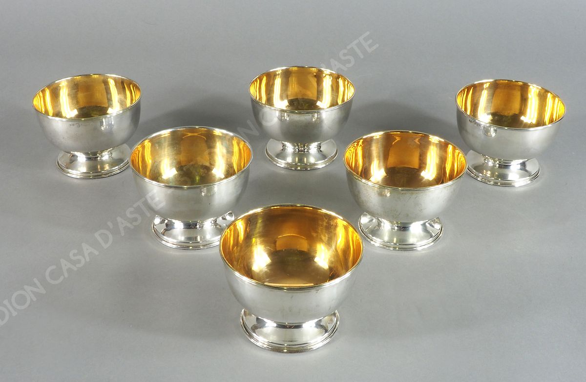 Brandimarte: lotto di 6 coppe da gelato in argento con interno dorato. gr. 630.