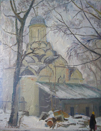 Hobucob " la Cattedrale imbiancata " olio su cartone cm 33 x 42,5 Firmato in basso a sinistra e sul retro, Prov.COLLEZIONE PRIVATA