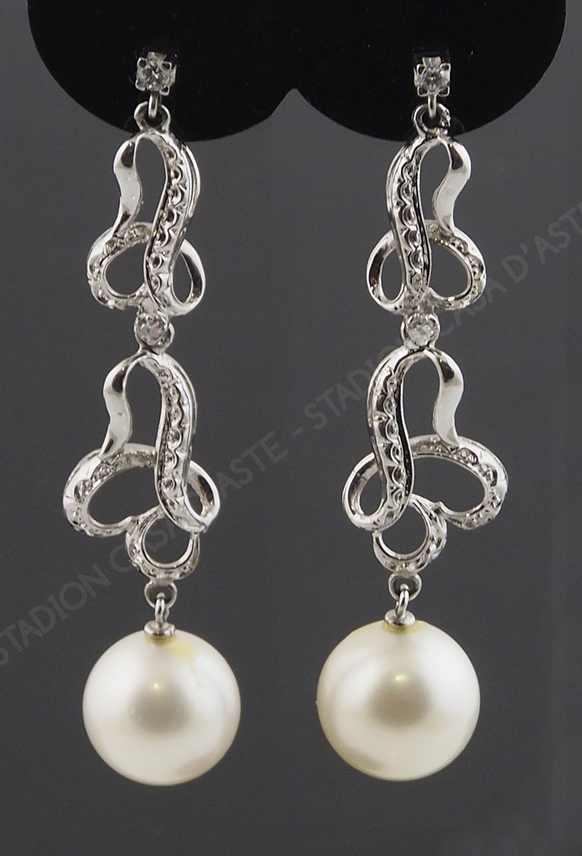 Lotto 610 | Orecchini in oro bianco a discesa con elementi sagomati con brillanti...