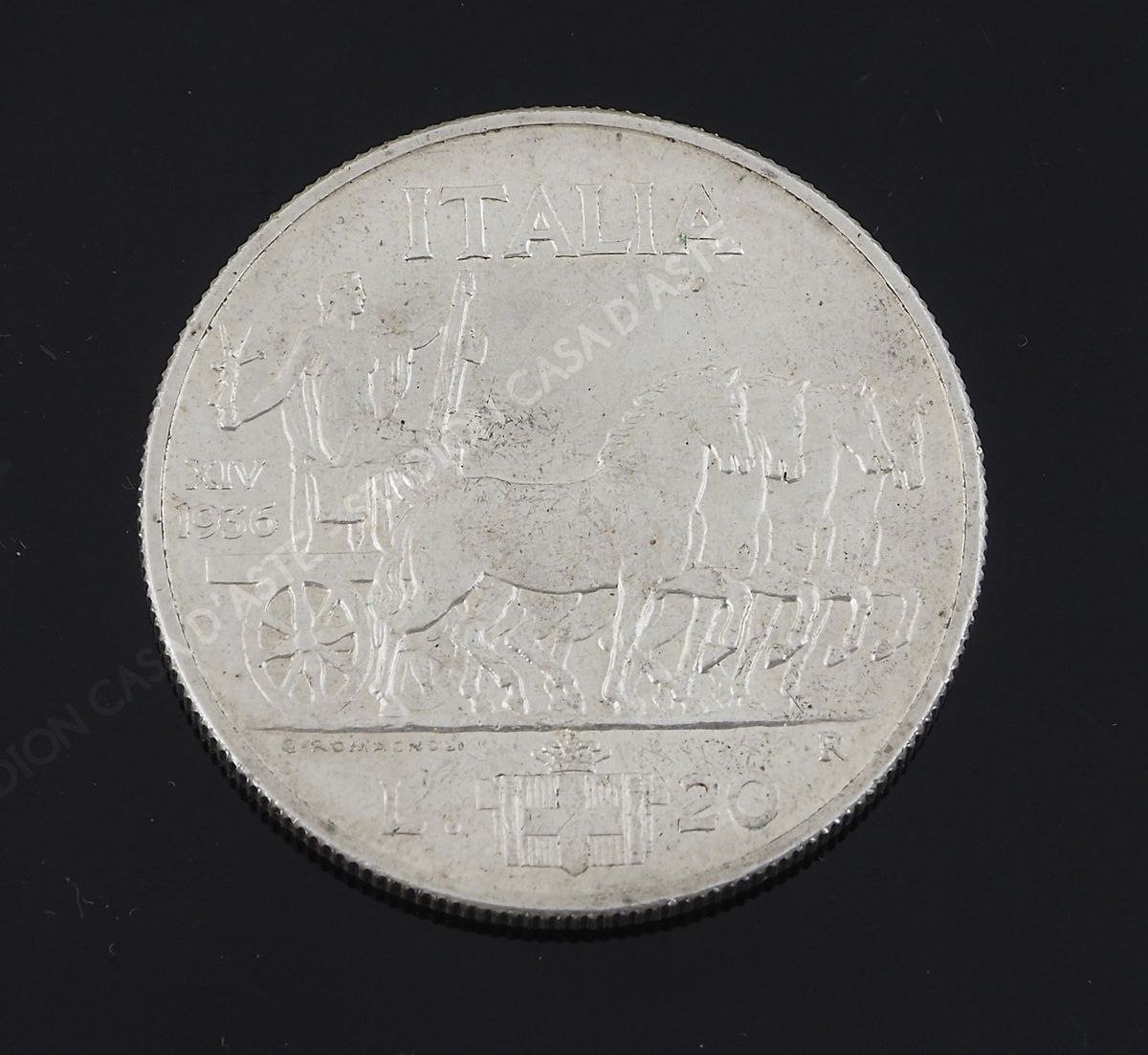 Moneta da 20 lire in argento "Vittorio Emanuele III", 1936. Perfetta.
